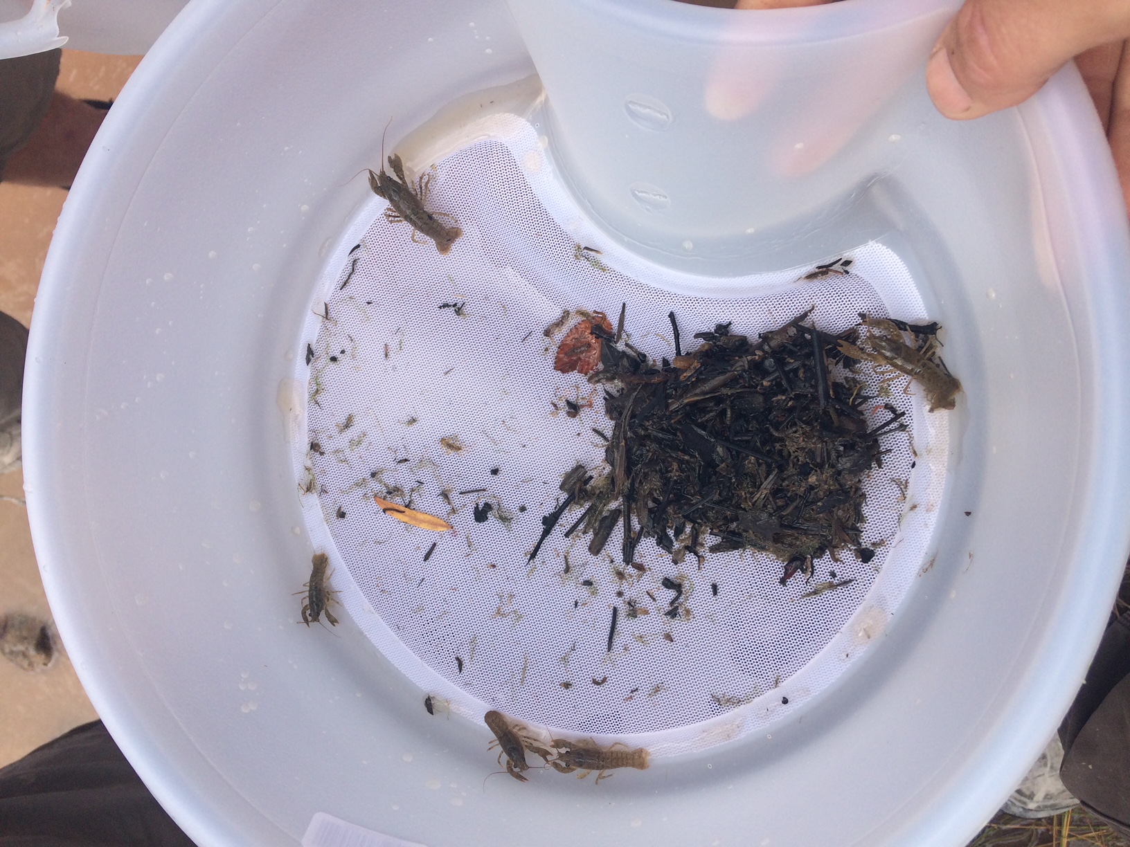 One of the most important methods for understanding the health of our river is to study the biological communities that live there. Benthic macroinvertebrates are animals without backbones that are large enough to see with the naked eye that live on the river bottom. Macroinvertebrates are good indicators of water quality because they require specific aquatic conditions for a healthy habitat. Macroinvertebrates are commonly used as water quality indicators because they are easy to sample, are situated at the bottom of the aquatic food web, and provide predictable life cycle patterns.