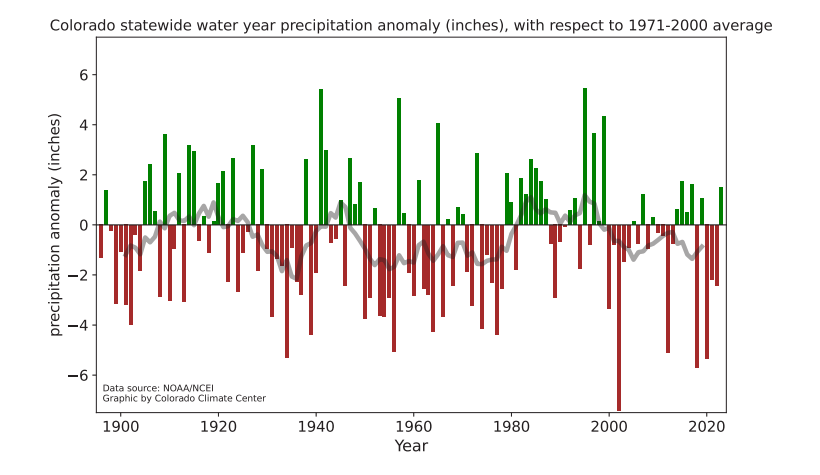 Looking back at the winter, it’s clear that temperature was in the driver’s seat the whole time. This lines up with an even longer trend for Colorado and the western United States. The trend is that over the last 150 years, precipitation has stayed largely stable throughout the state (Colorado Climate Report):